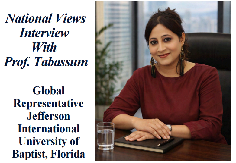 Featured in NationalViews 50 Under 50, Prof. Tabassum is a purpose-driven global education leader shaping cross-border academic engagement. As the Global Representative of JIUB – Jefferson International University of Baptist — a university registered in Florida, USA—she plays…….